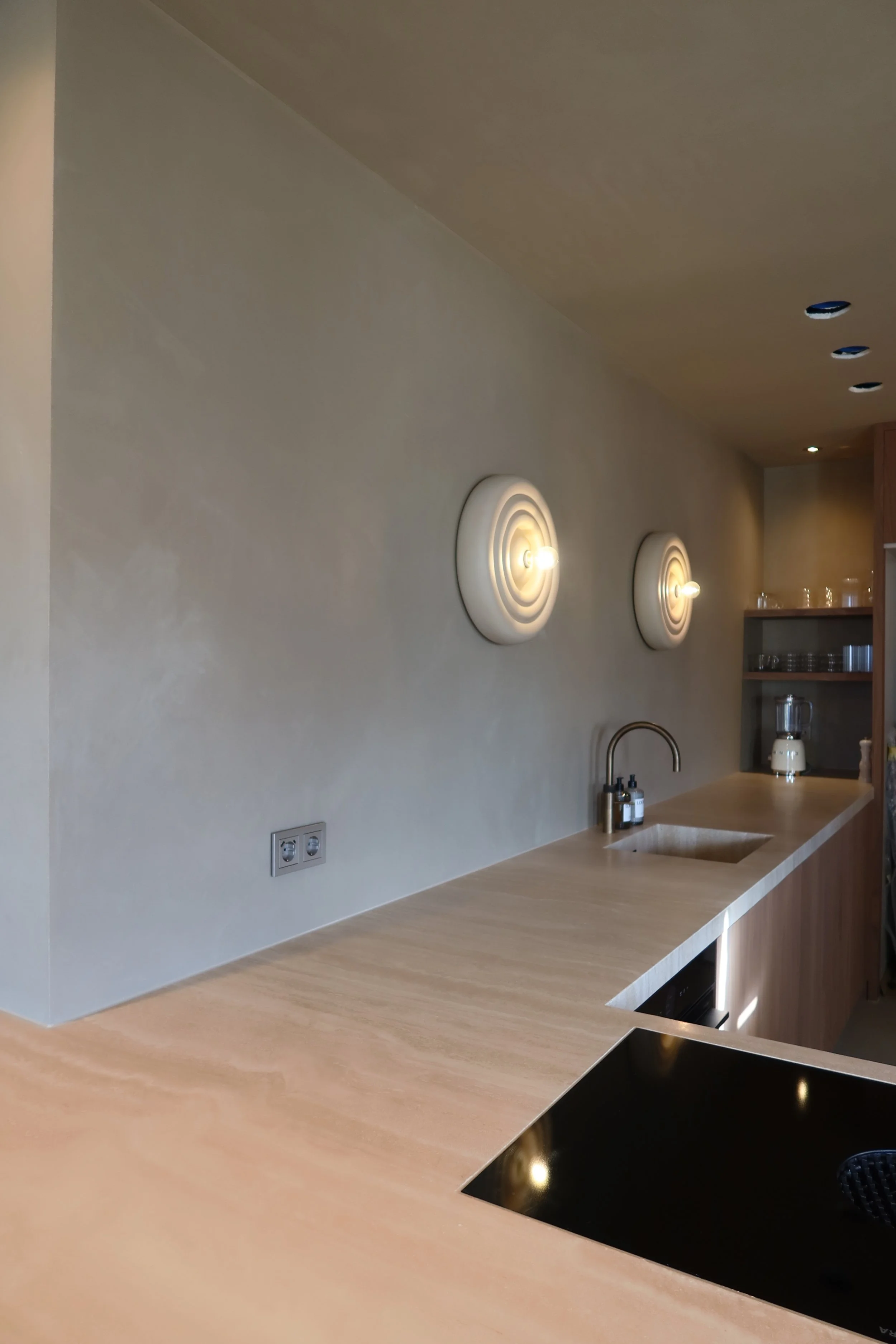 Our workshop near Haarlem is the heart of our creativity, where our team transforms standard microcement into something extraordinary. By enriching it with natural elements like wood chips, shells, and sand, we create textures that tell a story. Beyond furniture, we apply our seamless exotic microcement to floors, ceilings, and kitchens, offering limitless possibilities in any color or finish